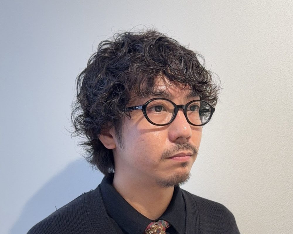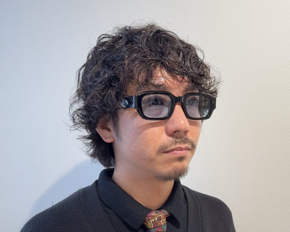 黒縁の安心感はそのままに顔まわりにスッと抜け感が入るイメージ。